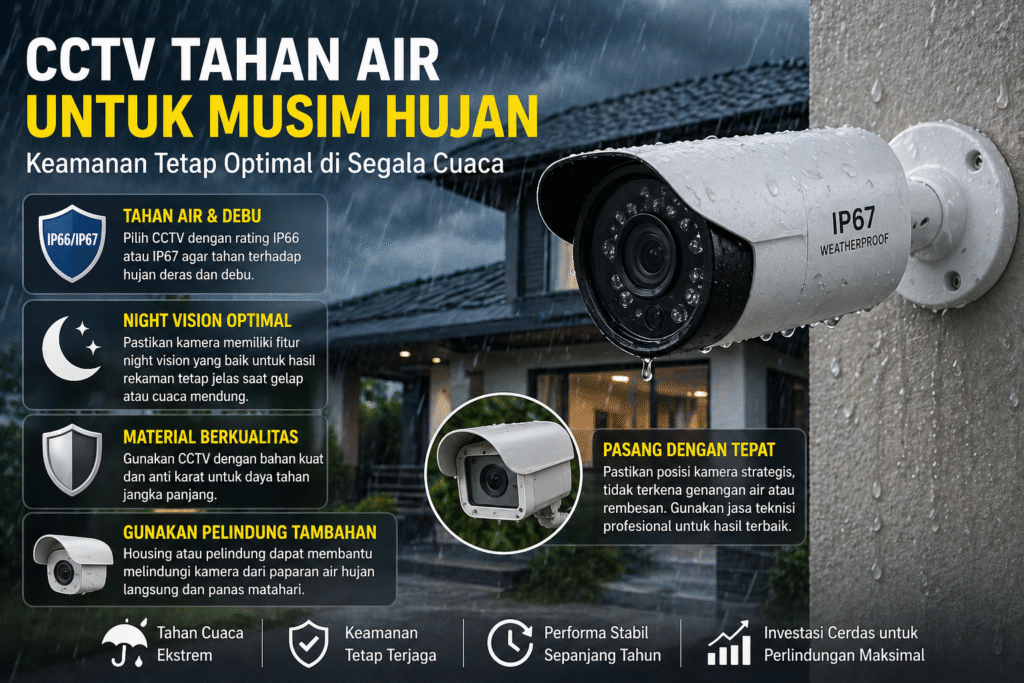 Musim hujan di awal tahun sering menjadi tantangan bagi perangkat keamanan seperti CCTV, terutama untuk penggunaan outdoor. Curah hujan yang tinggi, kelembapan udara, serta kondisi cuaca ekstrem dapat mempengaruhi kinerja kamera jika tidak menggunakan perangkat yang tepat. Oleh karena itu, penting untuk memilih CCTV tahan air dan cuaca ekstrem agar sistem keamanan tetap berfungsi optimal […]