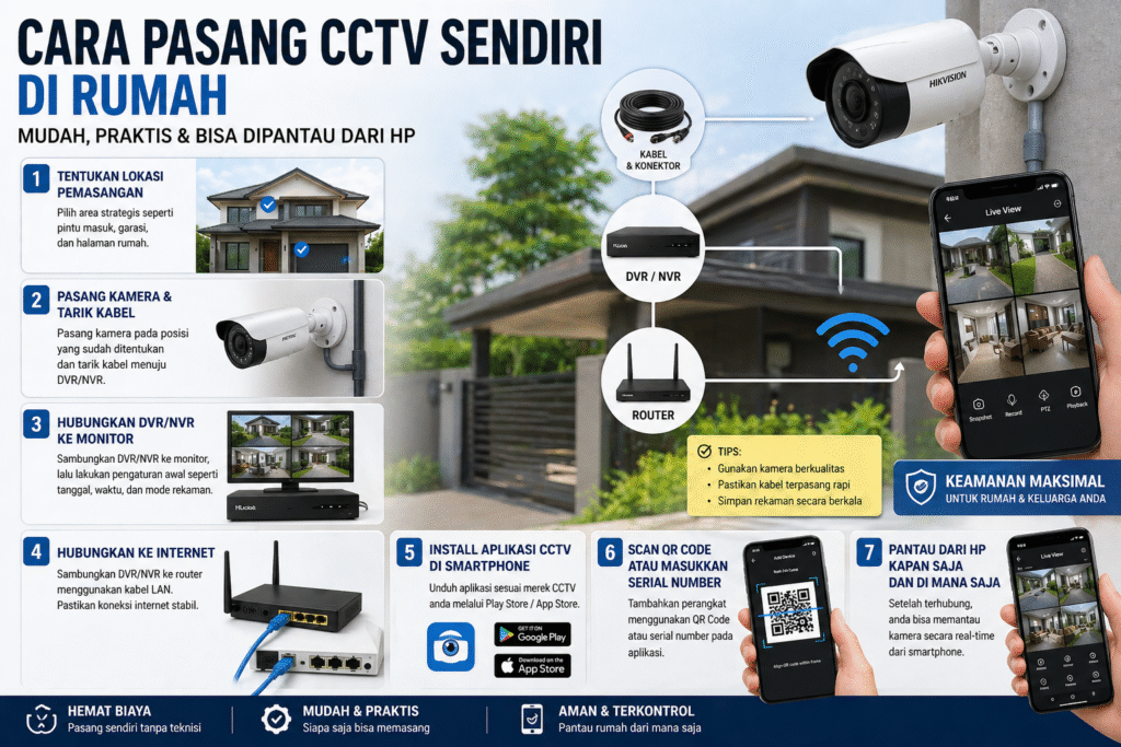 Memasang CCTV sendiri di rumah kini semakin mudah berkat perkembangan teknologi modern. Banyak produk CCTV Surabaya terbaru yang dirancang user-friendly sehingga bisa dipasang tanpa bantuan teknisi. Bagi Anda yang ingin menghemat biaya instalasi, memahami cara pasang CCTV sendiri di rumah adalah solusi yang tepat sekaligus efisien. Langkah pertama dalam instalasi CCTV adalah menentukan lokasi pemasangan […]